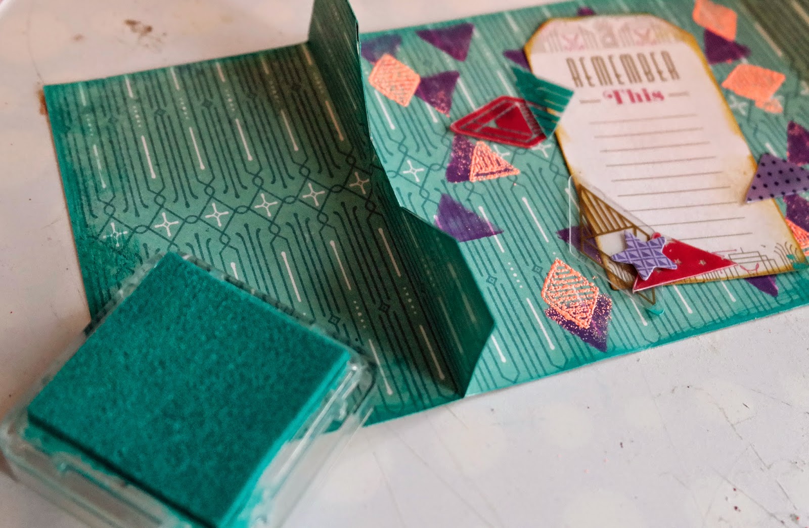 this Remember This die-cut and ink the edges with a gold ink pad.