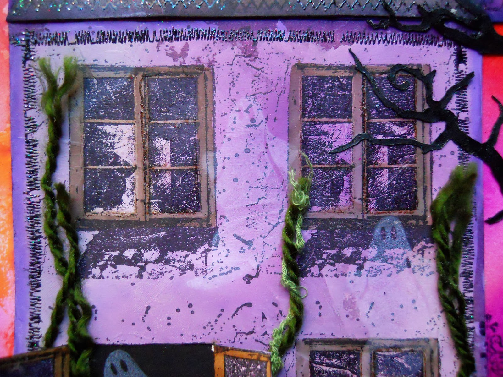 Watch out for the ghosts that I hid inside some of the windows, stamped with Picket Fence Distress Ink!